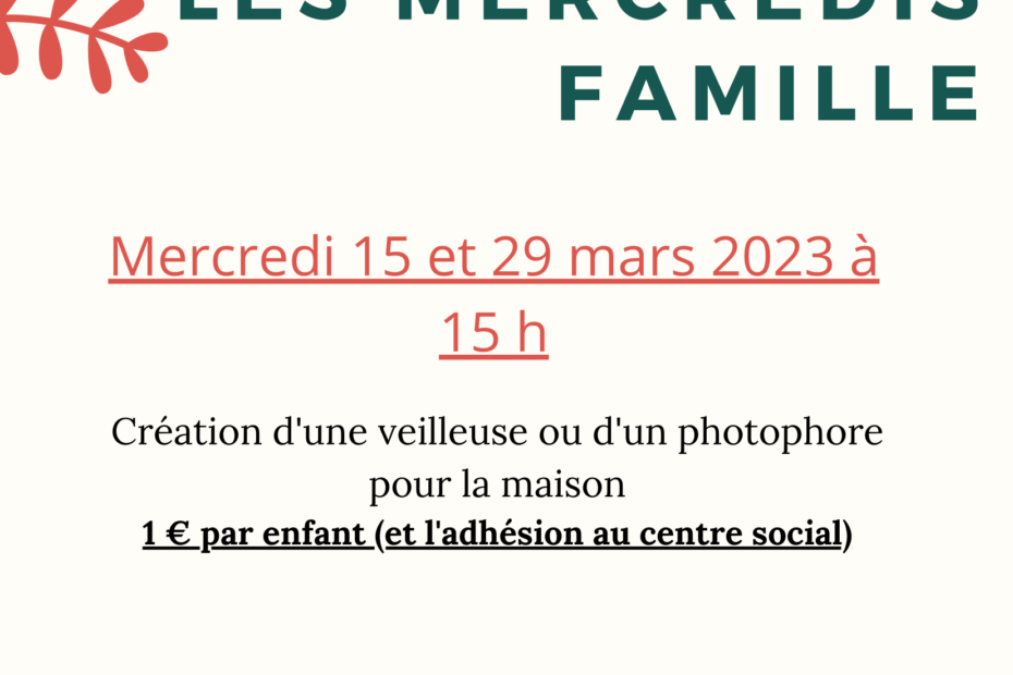 Les mercredis 15 & 29 mars venez profiter d’un atelier en famille en après-midi.Les mercredis famille