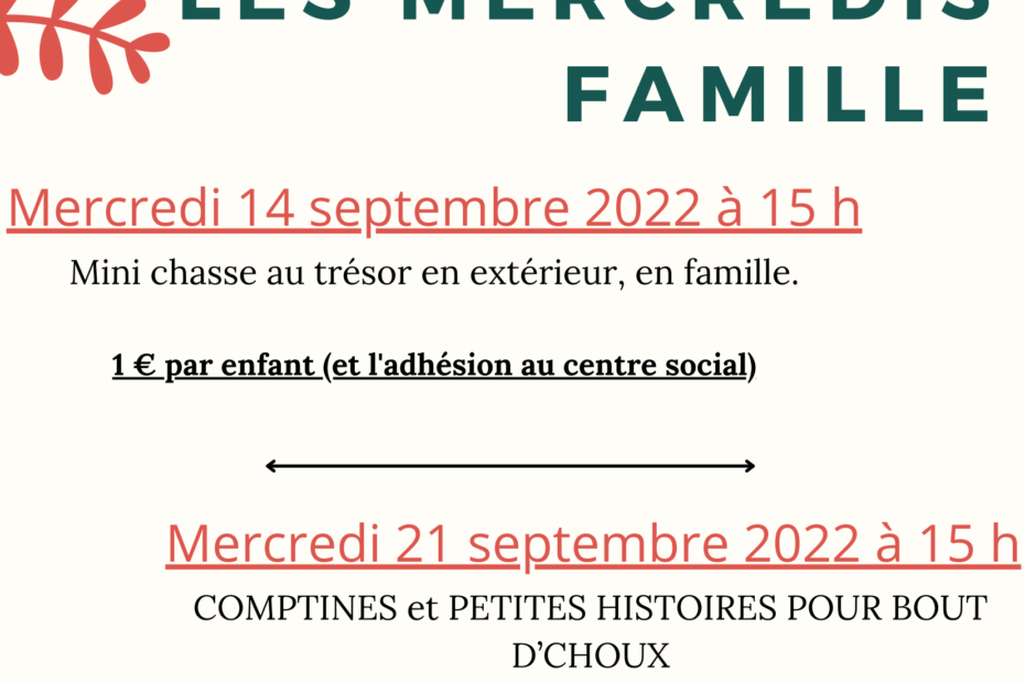 Venez profiter d’un temps en famille, les mercredis 14 et 21 septembre 2022.