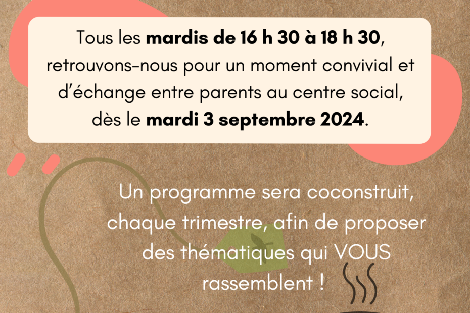 Nouveau rendez-vous tous les mardis de 16 h 30 à 18 h 30 ! Café parentali’thé