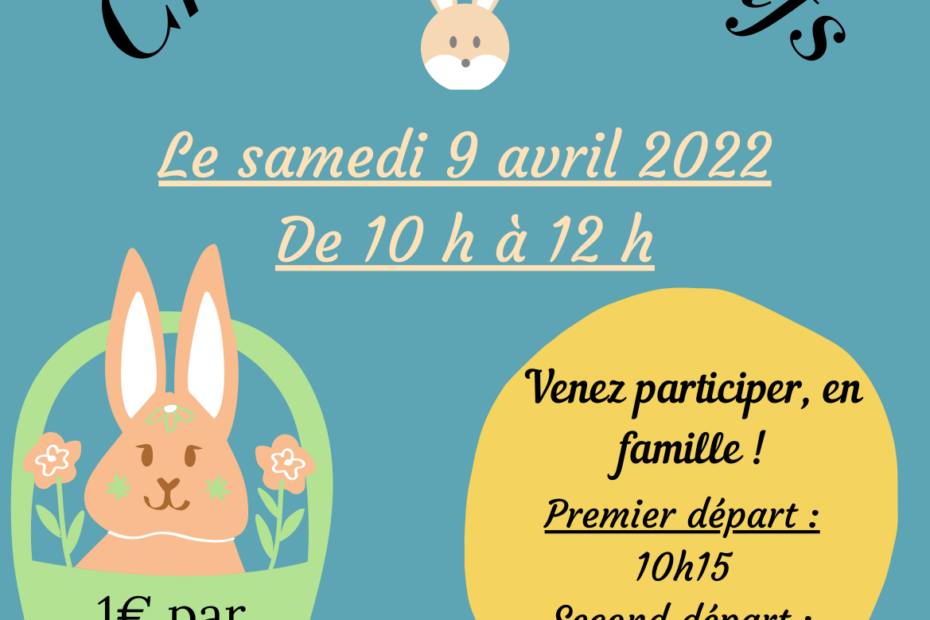 En famille, venez participer à la chasse aux œufs le Samedi 9 avril 2022 ! Petits & grands, venez vous amuser aux différents jeux que vous propose les petits lapereaux ! Une petite surprise vous attendra à la fin de vos jeux ….