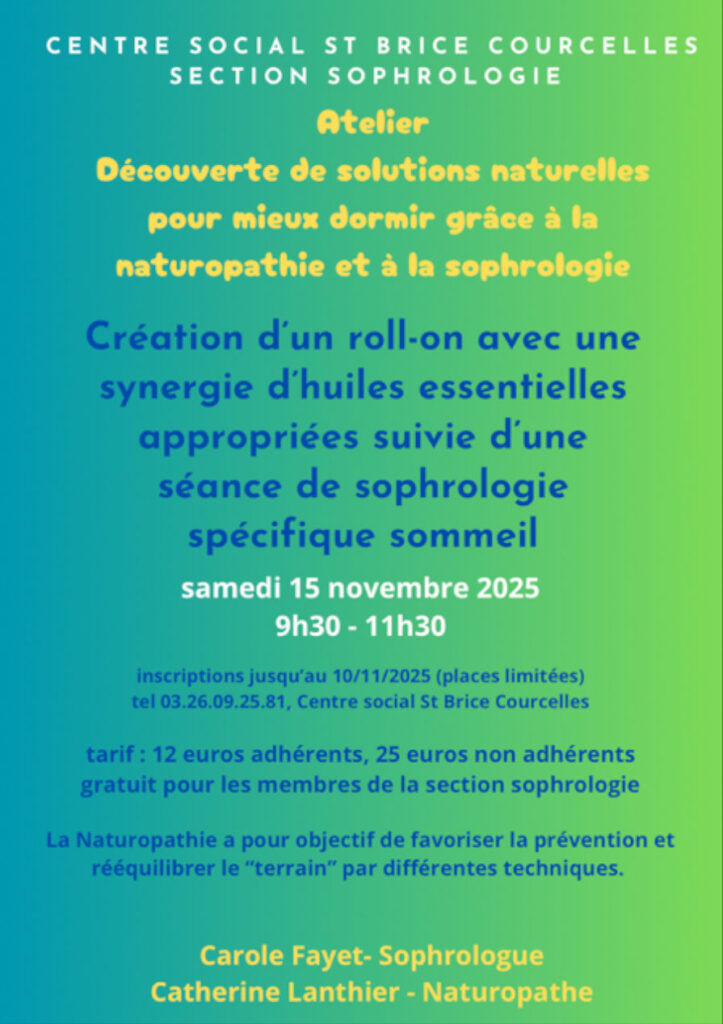 17 octobre 2025 HomeNon classéStage Sophrologie le 15 novembre Stage Sophrologie le 15 novembre By redacteur1 Non classé 0 Comments Atelier Découverte de Sophrologie et création d’un roll-on sur le thème du sommeil