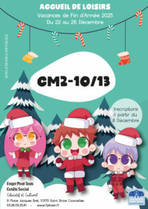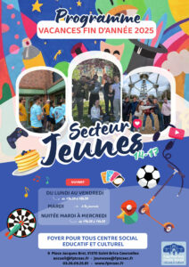 15 décembre 2025 HomeenfancePlaquettes des Vacances de fin d’année Plaquettes des Vacances de fin d’année By redacteur1 enfance 0 Comments Ci-dessous les plaquettes de vacances de fin d’année, cliquez sur les images pour les visualiser en intégrité. Tags:10-13 ans, 14-17 ans, 3-10 ans, centre de loisirs, enfance, fin d'année, Noël, petites vacances, plaquette, primaire, vacances